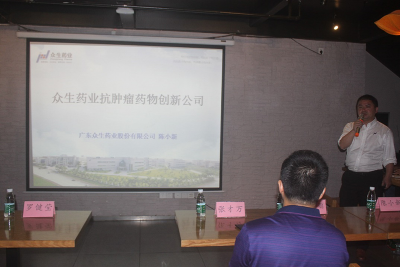 廣東眾生藥業有限公司的研發中心副總經理,陳小新博士做了“眾生藥業抗腫瘤藥物創新公司”主題演講。陳博士介紹了眾生藥業概況,眾生抗腫瘤藥物創新公司概況,眾生新藥開發計劃及資金需求。